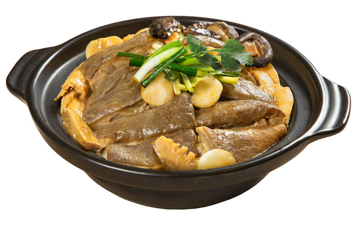 黑草羊腩原件燜煮、再由師傅巧手去骨斬件,每件都啖啖肉。配上入味支竹、軟稔冬菇、清甜馬蹄、爽脆冬筍。秋冬必食,暖身之選。每份羊腩煲都配有一包湯汁、生菜、秘製腐乳醬。