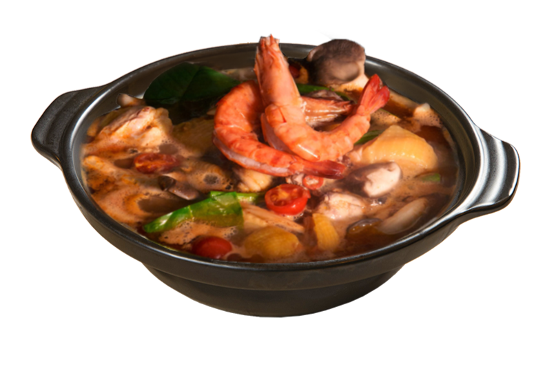 師傅以心機及時間熬製而成的自家製泰式冬蔭功湯底,配上原隻靚雞及大蝦