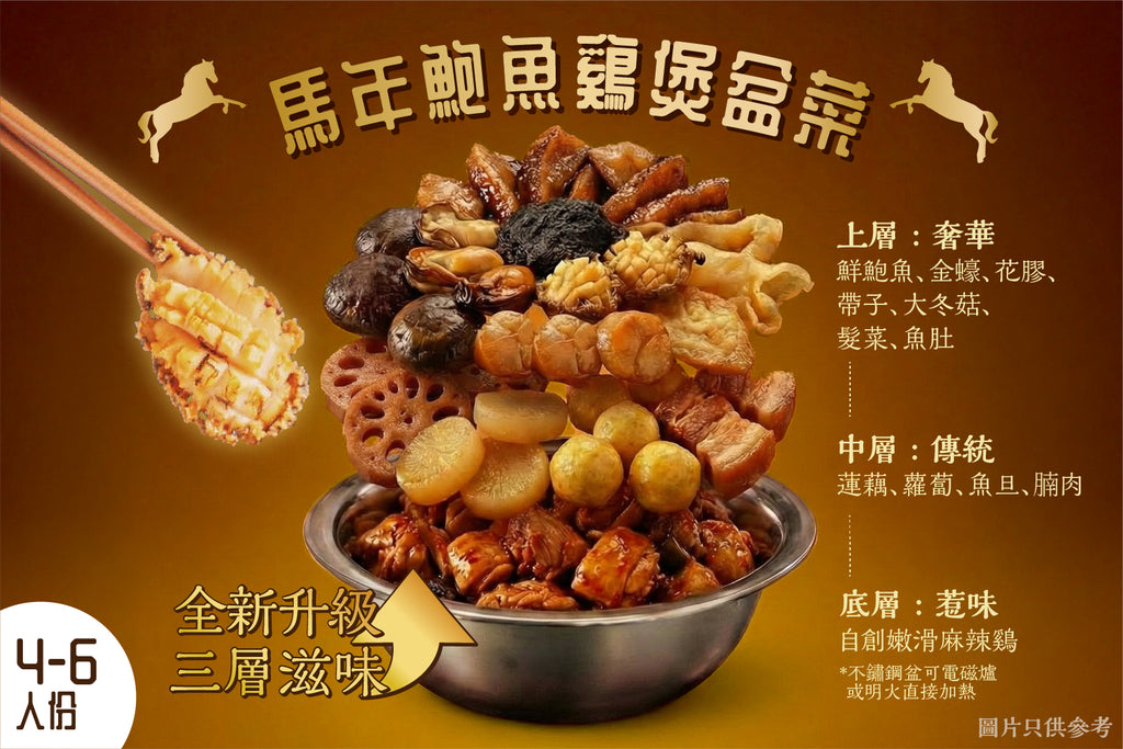 做節加餸必備 ---> 新年鮑魚雞煲盆菜(限量發售)